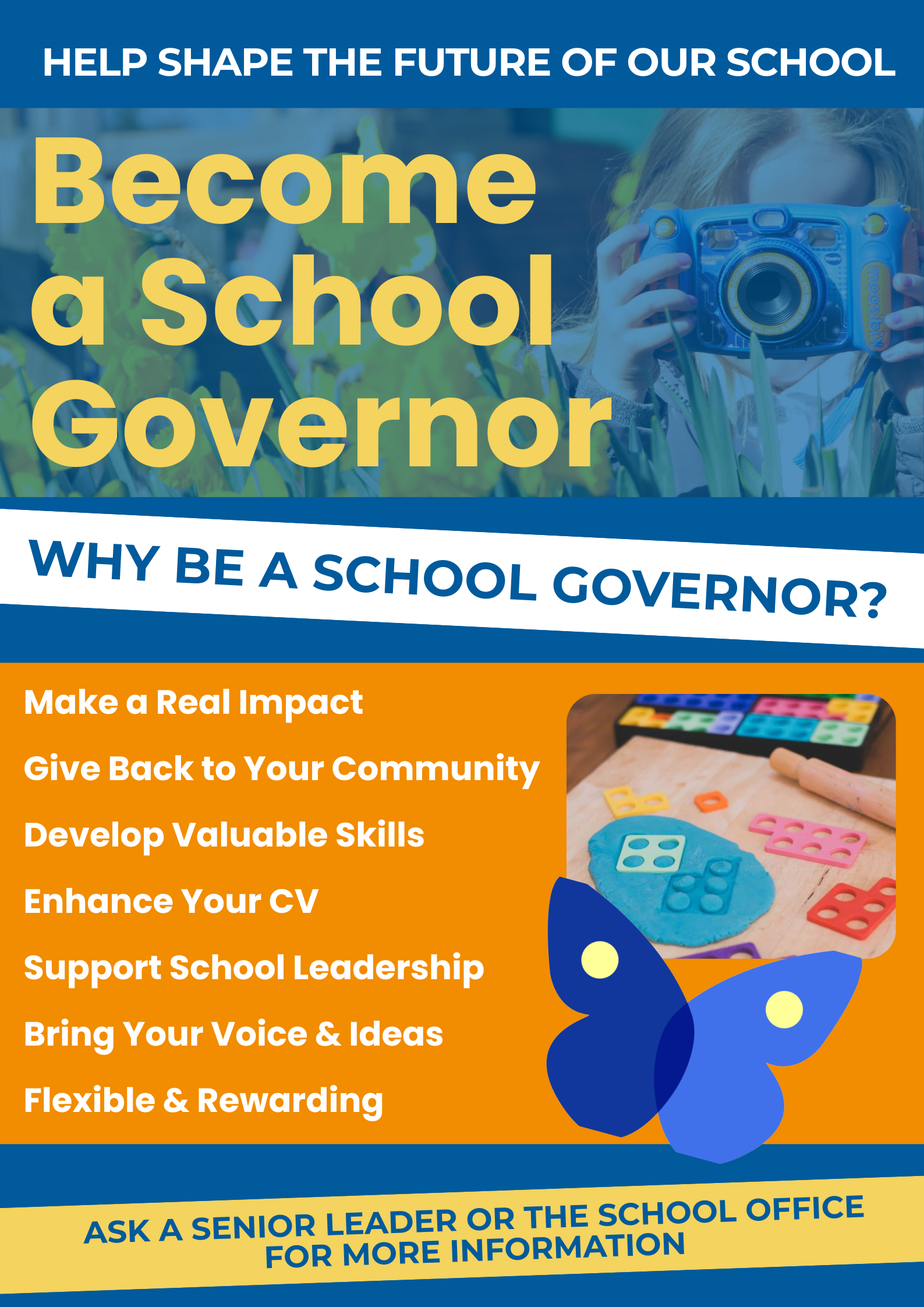 If you are interested in finding out more or becoming a Parent Governor (1 vacancy) please speak to the school office.